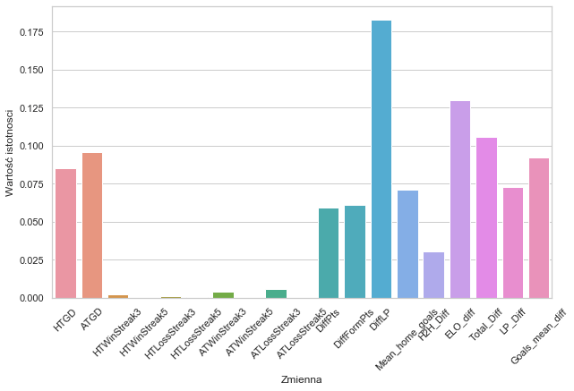 ax = sns.barplot(x="Zmienna", y="Wartość istotnosci", data=xb)