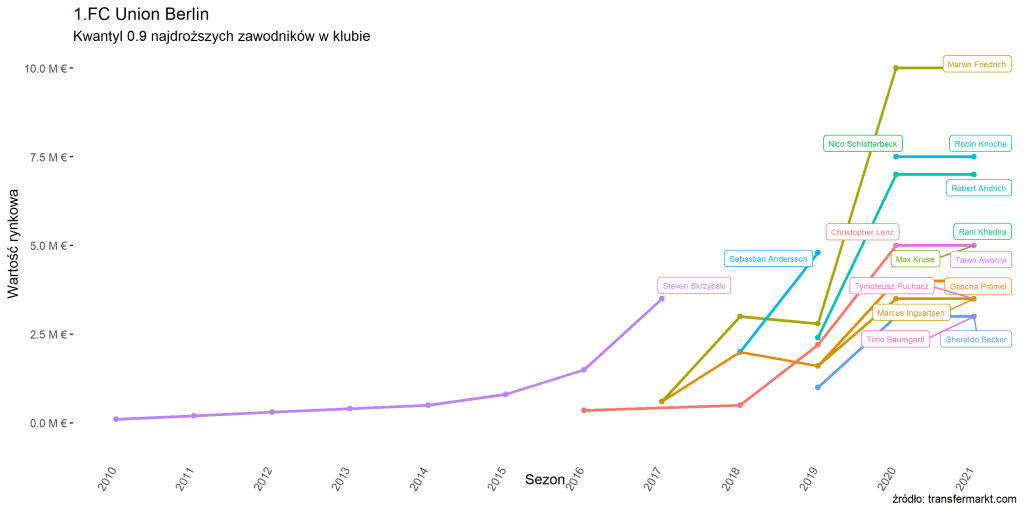 Wartości zawodników na przestrzeni ostatnich sezonów – Union Berlin