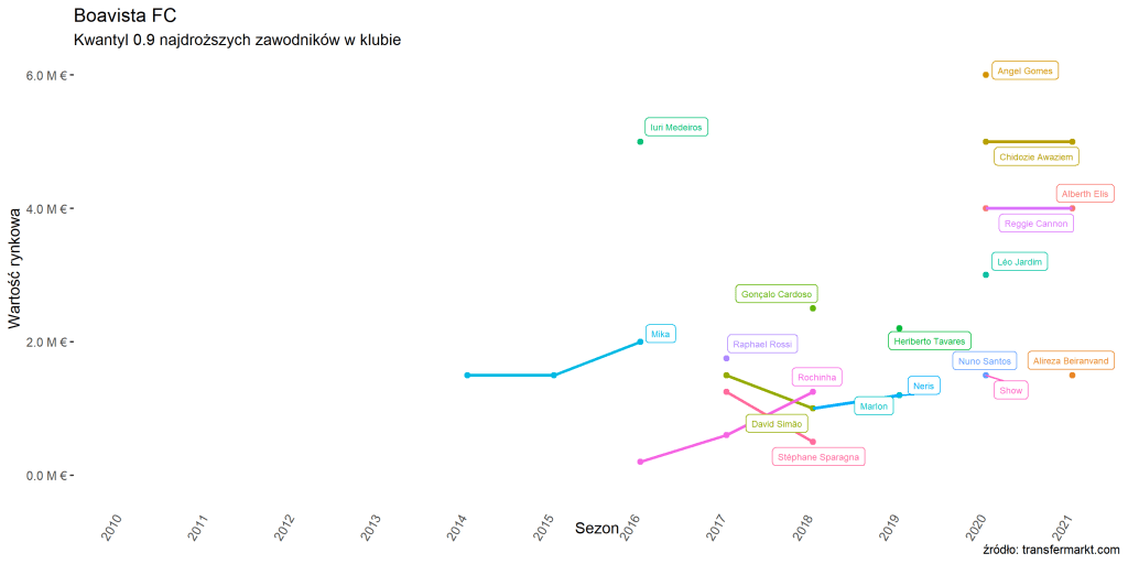Wartości zawodników na przestrzeni ostatnich sezonów – Boavista