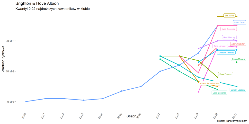 Wartości zawodników na przestrzeni ostatnich sezonów – Brighton