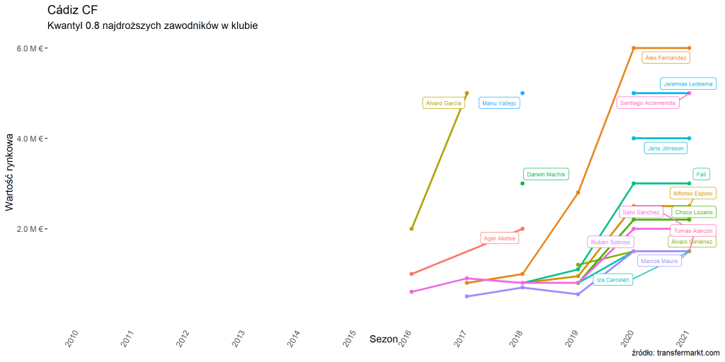 Wartości zawodników na przestrzeni ostatnich sezonów – Cadiz