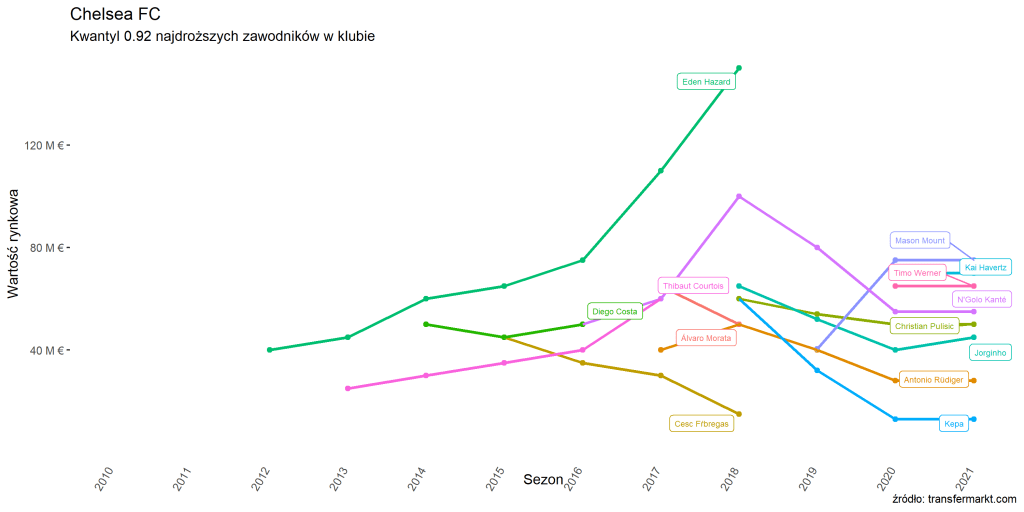 Wartości zawodników na przestrzeni ostatnich sezonów – Chelsea
