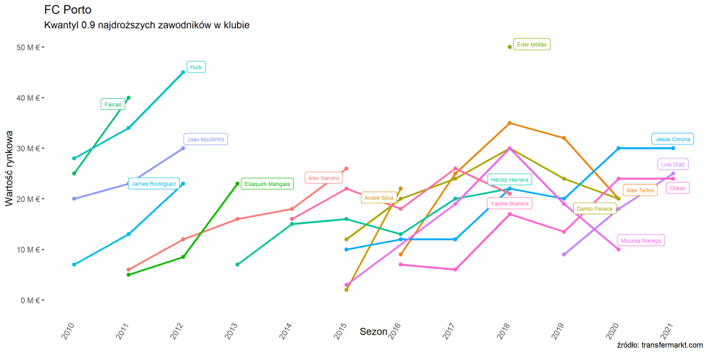 Wartości zawodników na przestrzeni ostatnich sezonów – FC Porto