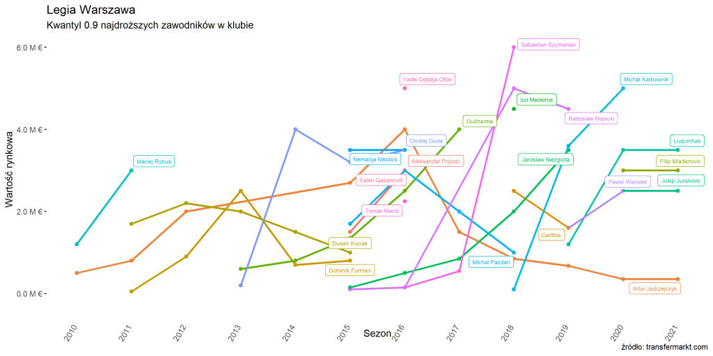 Wartości zawodników na przestrzeni ostatnich sezonów – Legia Warszawa