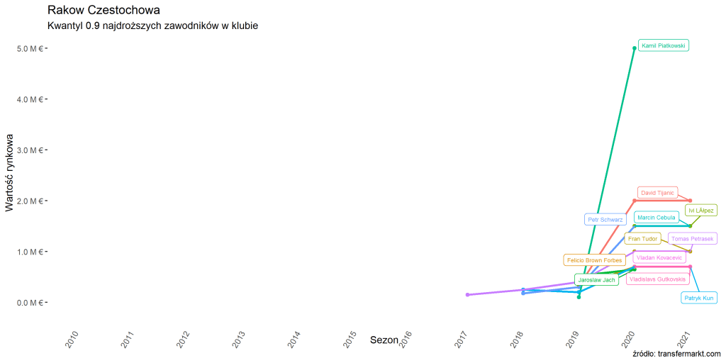 Wartości zawodników na przestrzeni ostatnich sezonów – Raków Częstochowa