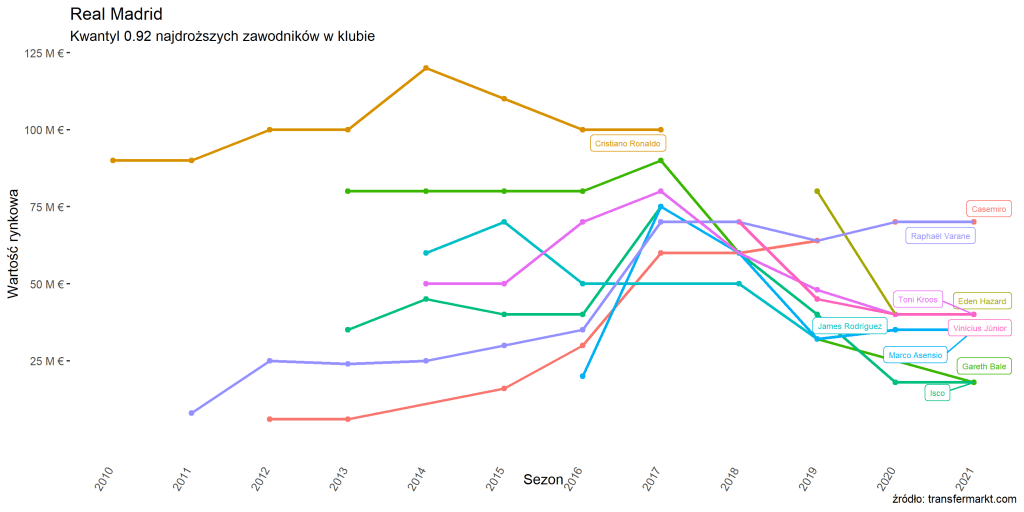 Wartości zawodników na przestrzeni ostatnich sezonów – Real Madryt