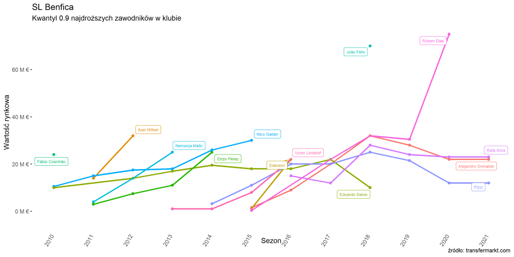 Wartości zawodników na przestrzeni ostatnich sezonów – Benfica