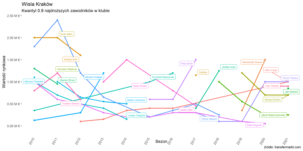 Wartości zawodników na przestrzeni ostatnich sezonów – Wisła Kraków